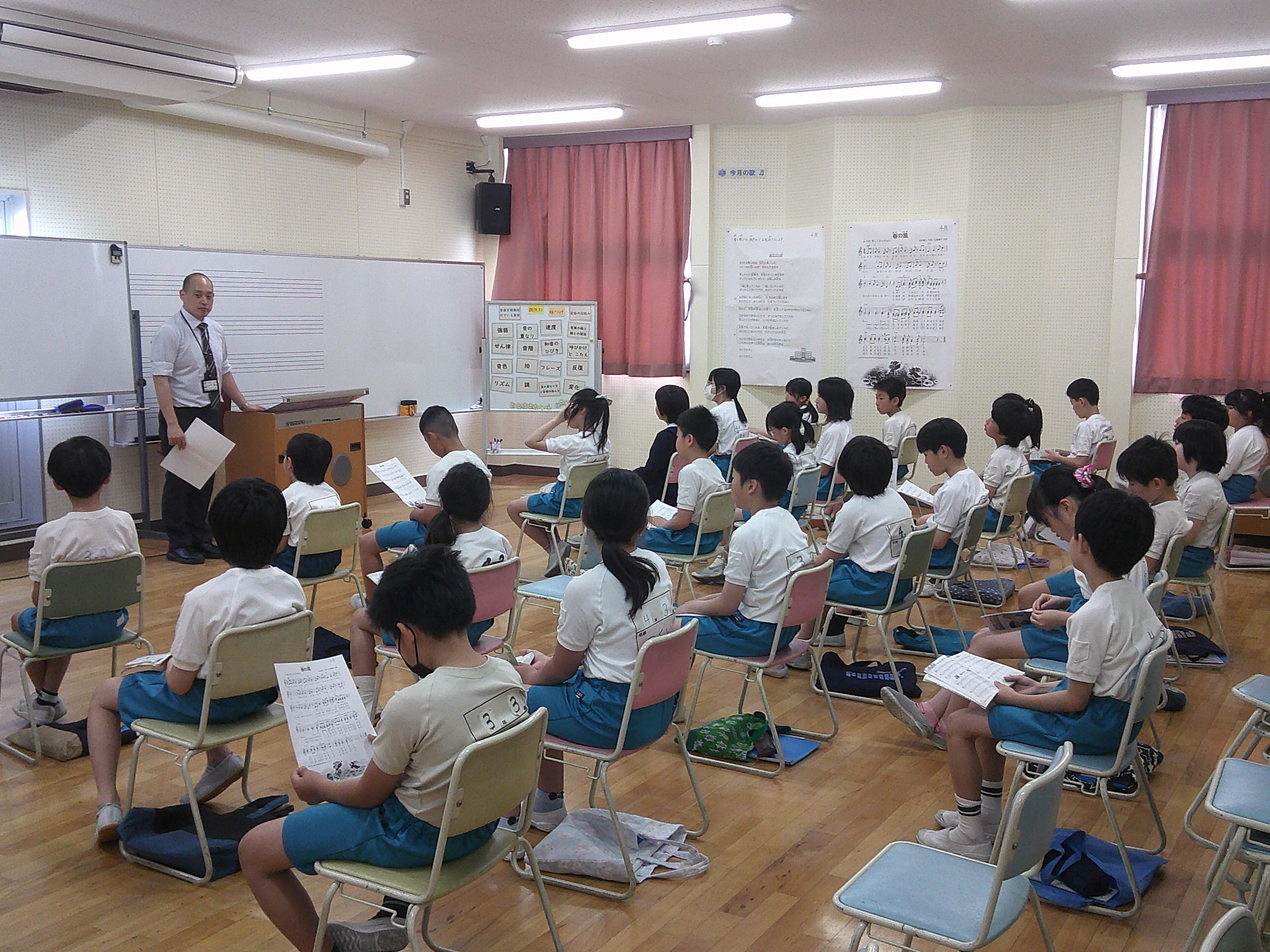 4年生になり、音楽室での音楽の授業が始まりました。 初めて入る音楽室や移動教室に、子どもたちはわくわくした気持ちで取り組んでいます。新しい学習環境の中で、高学年としての意識をもちながら授業に参加しています。
